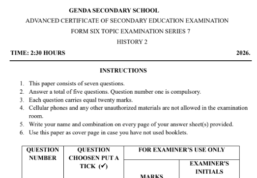 FORM FOUR PRE-NECTA TWO (02) EXAMINATION -2025