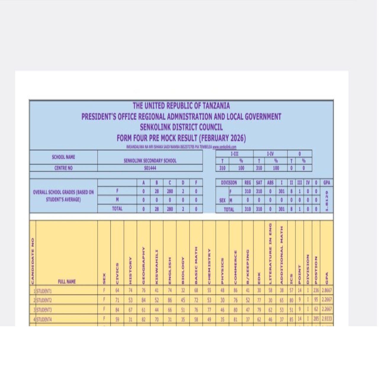 - ✅ Division Summary: Provides a total count of students in Division I, II, III, IV, and 0.