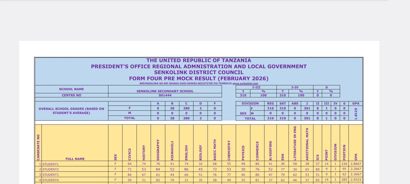 - ✅ Subject Grading: Automatically assigns grades for every subject.